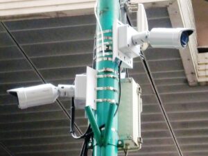 国道沿いの為、通常の信号ケーブル配線の許可が下りないことから業務用の特殊無線機器を使用して有線ではなく無線にて画像伝送を行っております。